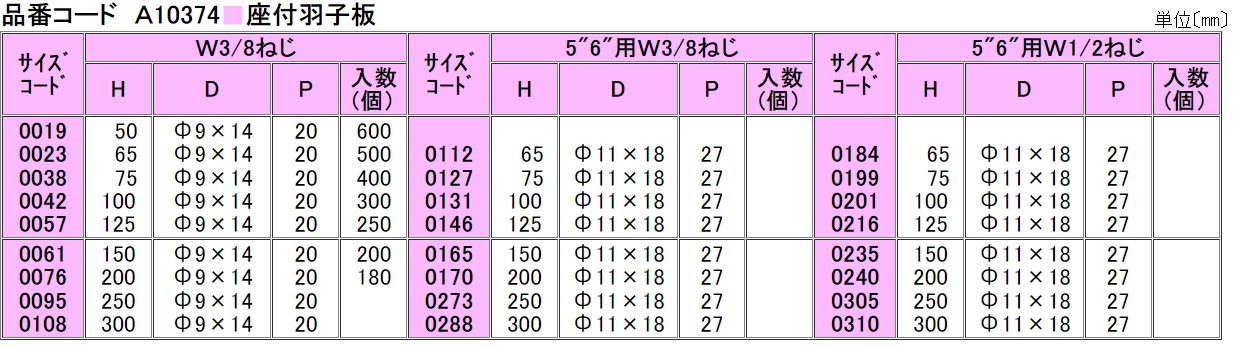座付羽子板 W3/8ねじ